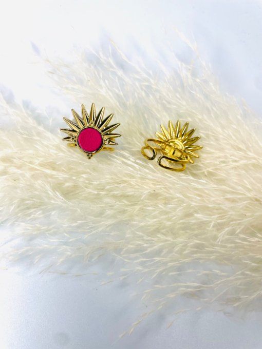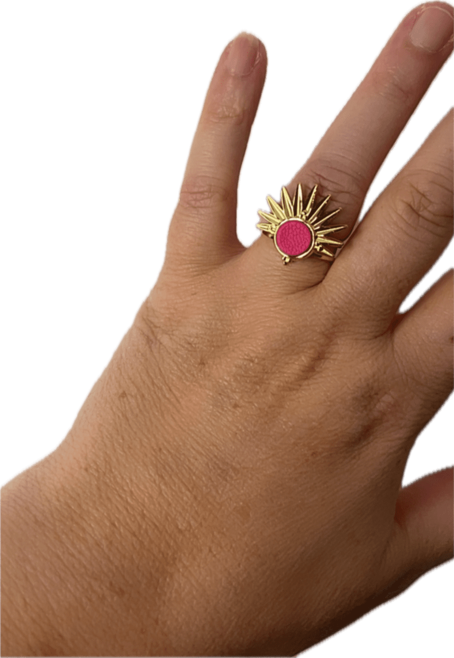 Bague en acier inoxydable plaqué or avec insert en cuir véritable