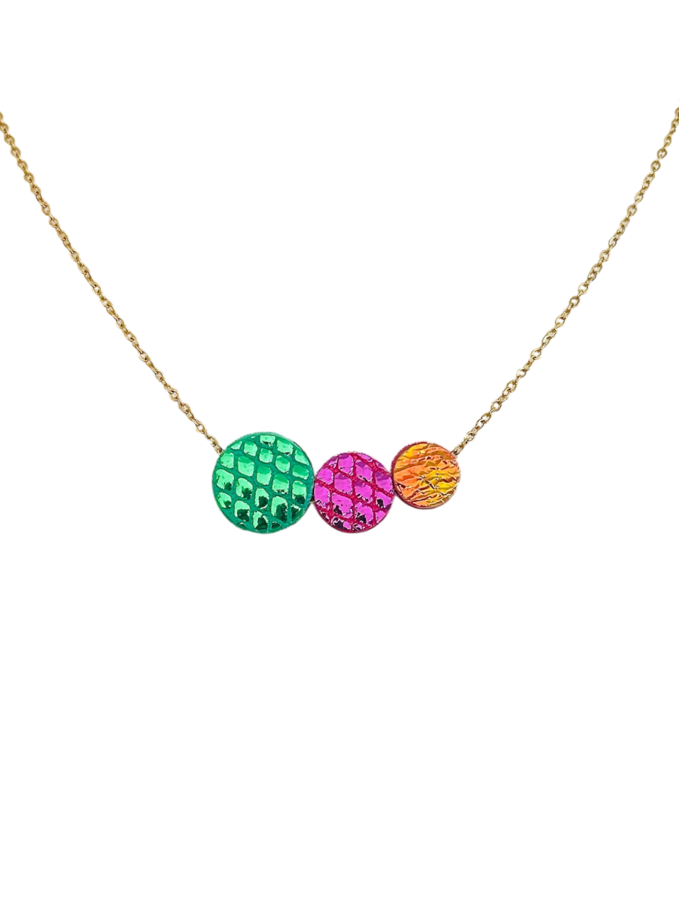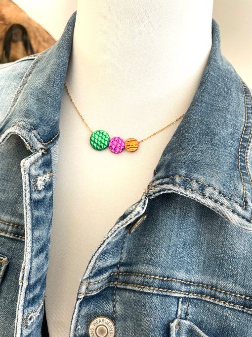 chaine en acier inoxydable doré sublimée par 3 ronds en cuir véritable