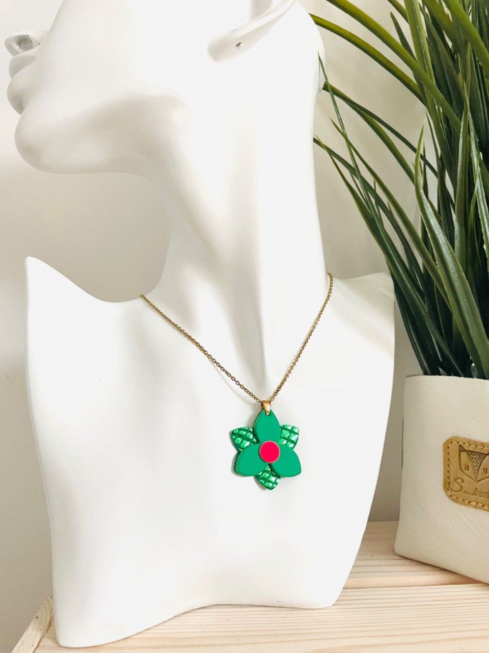 pendentif floral en cuir véritable